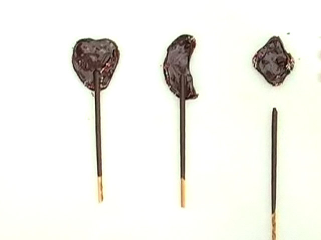 Оригинальный рецепт леденцов с сюрпризом.Состав:шоколад, карамель, сливочное масло, посыпка, шоколадные палочки.